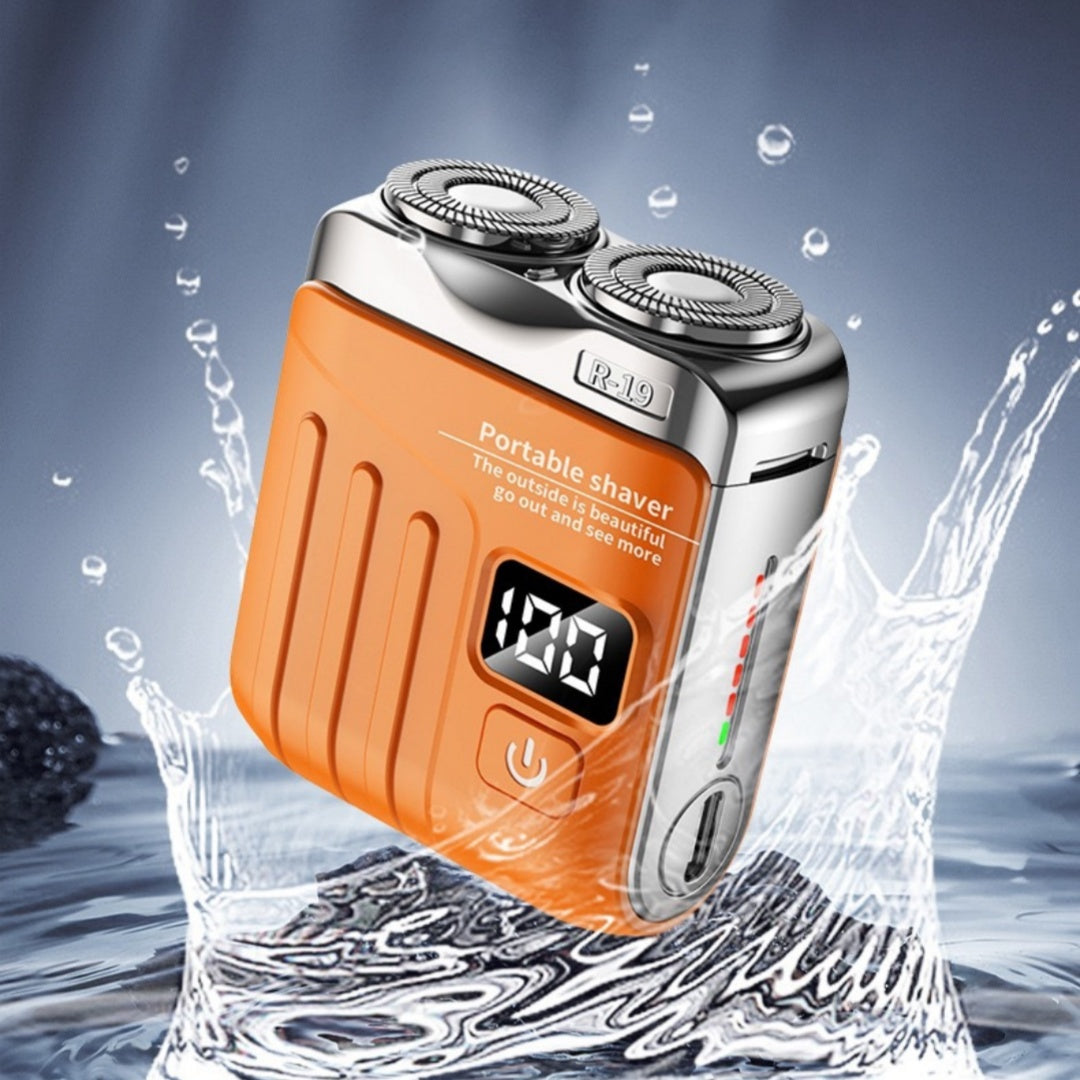 The R-19 mini electric shaver removes beard hair in seconds with its floating dual-blade system and powerful, quiet motor. Compact, rechargeable, and waterproof — perfect for a quick shave at home, at the office, or while traveling. ✨